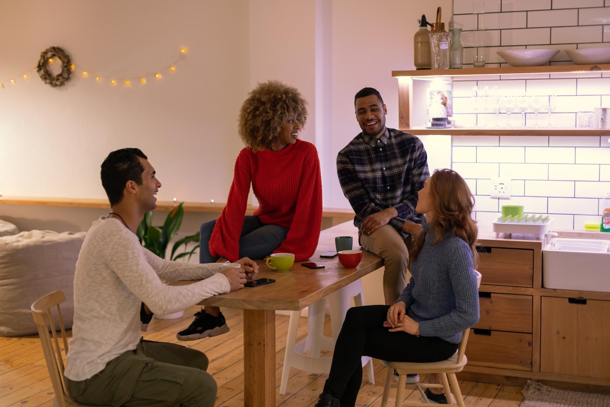 Five diverse young people on group therapy session