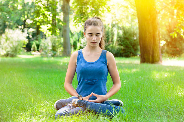 meditating teenage girl in a park