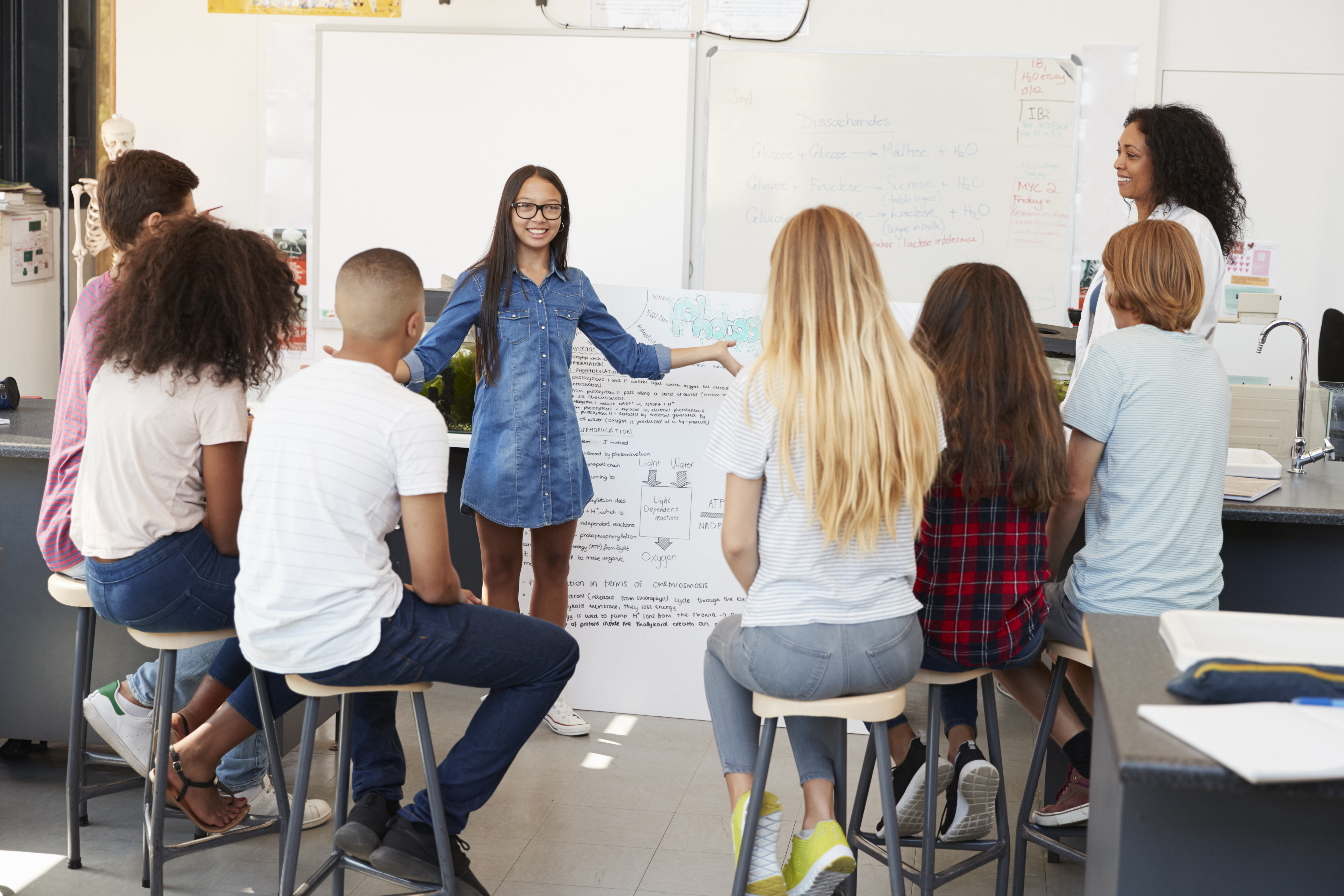 Male High School Tutor Standing And Teaching Students In Biology Class